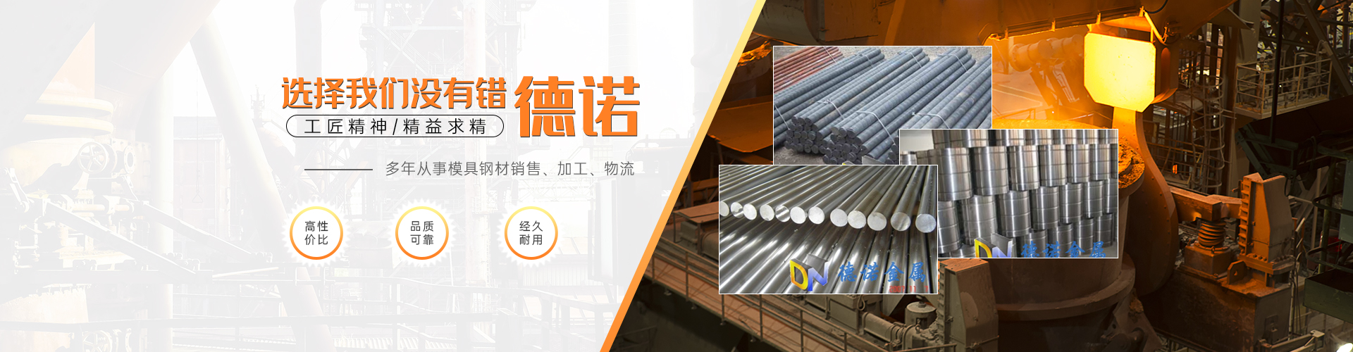 東莞市德諾金屬鋼鐵有限公司成立于2010年,立足于珠江三角洲,是一家集多家進口優質模具鋼材銷售批發及機加工服務于一體的大型企業。公司投大量資金與世界著名鋼廠簽立優特鋼經銷權,銷售國內著名鋼廠不銹鋼產品  經銷國際著名鋼廠進口產品。